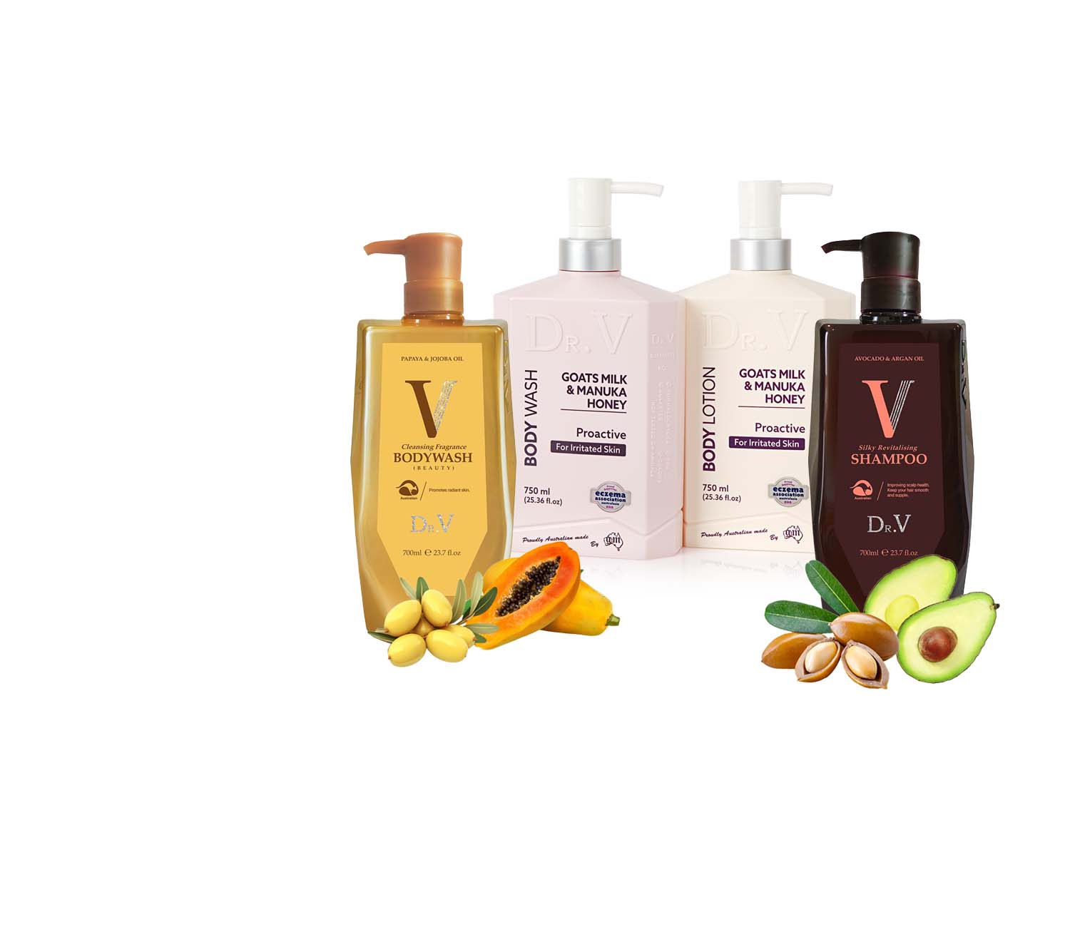 The Dr V range has been expertly crafted to offer scientifically formulated botanical care for both your hair and body