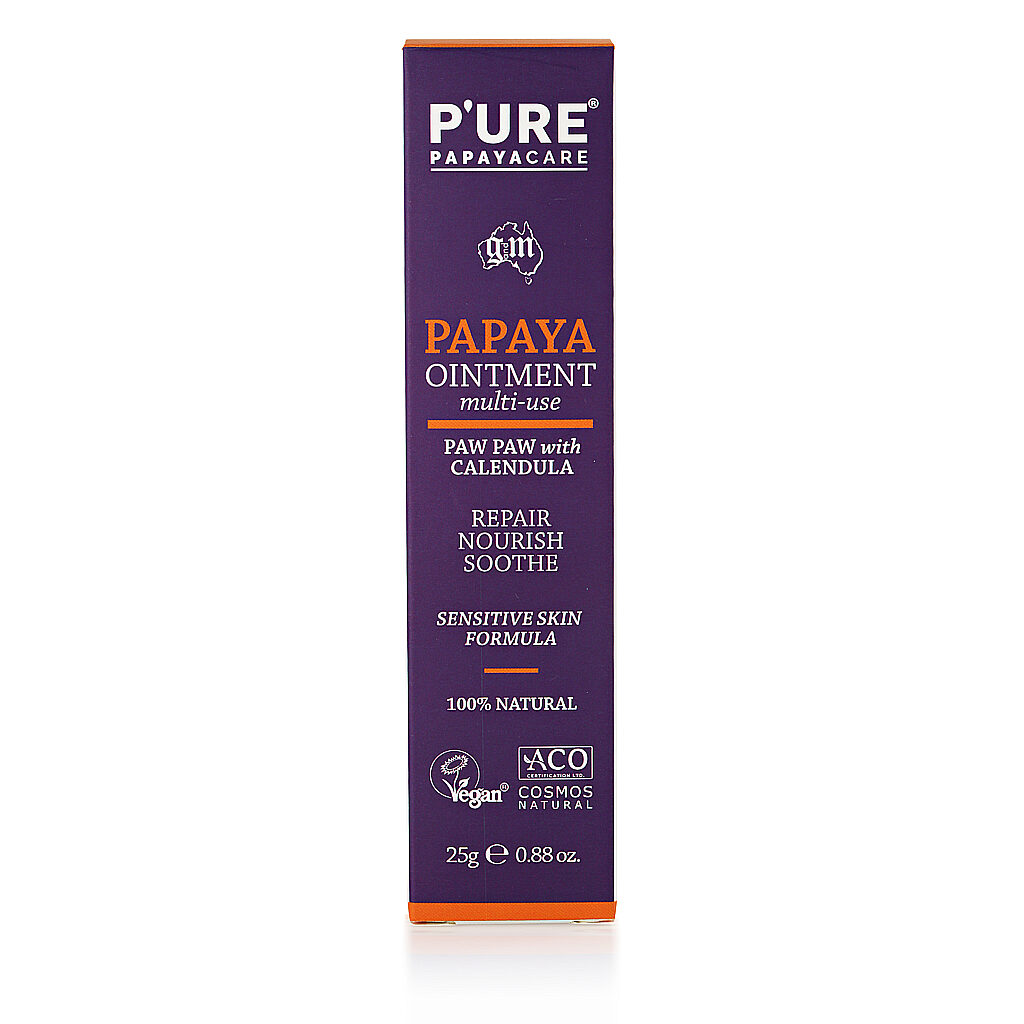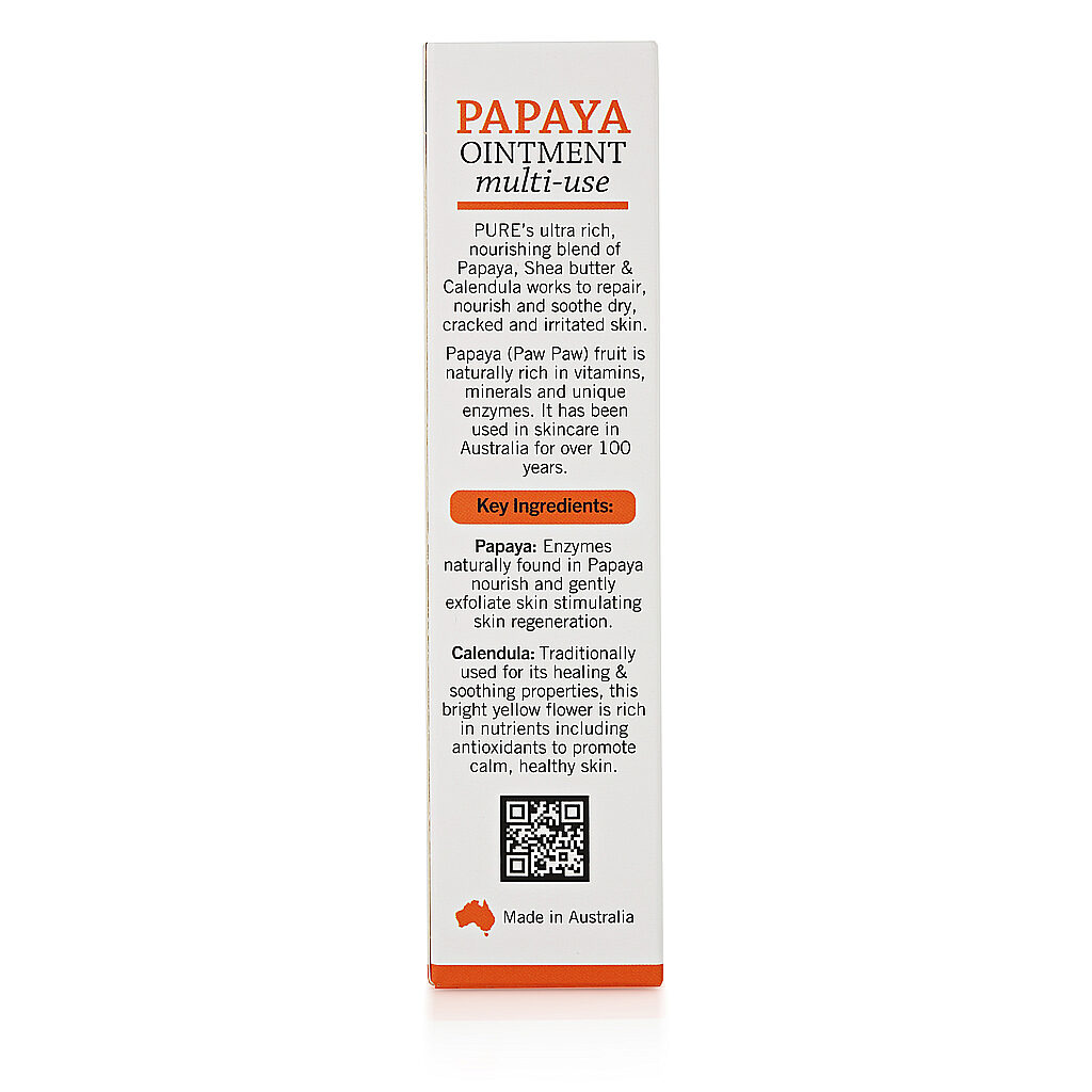 P'URE Papayacare Papaya Ointment features a rich nourishing blend of Papaya, Shea Butter & Calendula provides instant nourishment, repairing and soothing dry, cracked & irritated skin & lips. Formulated without petroleum, parabens, sulphates, artificial colours & fragrances.